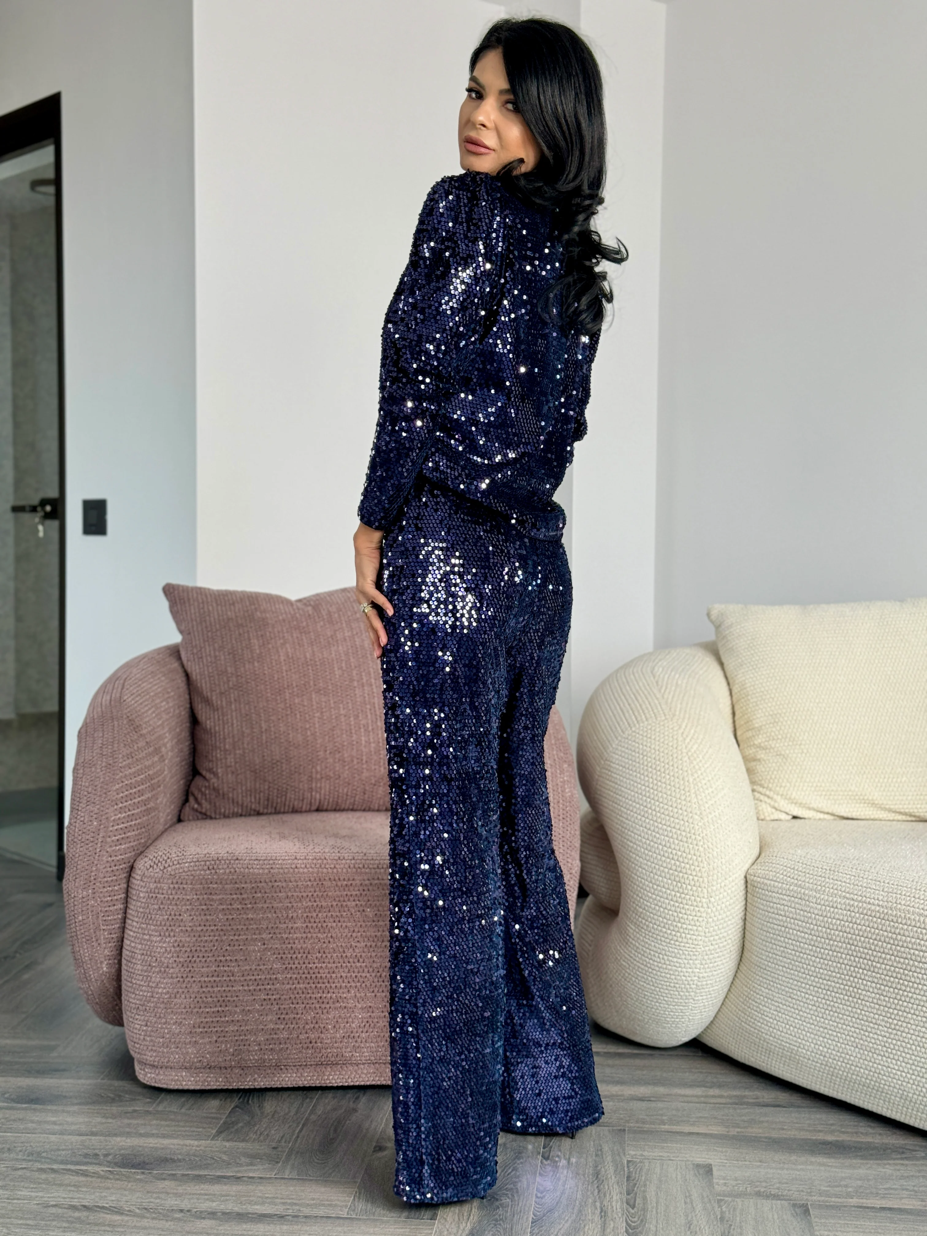 Un costum realizat din paiete este întotdeauna o bună alegere pentru evenimentele unde vrei să creezi un look elegant și glamour, în același timp.